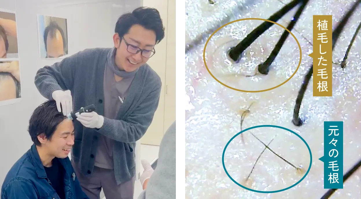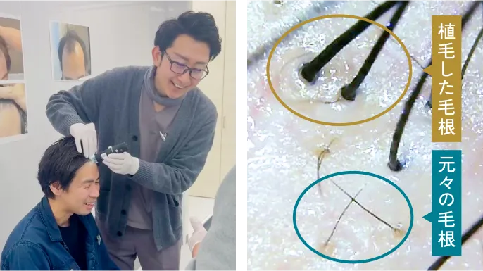 実際の植毛経験者の頭皮を見ていただくこと、具体的な成果を実感いただけます。