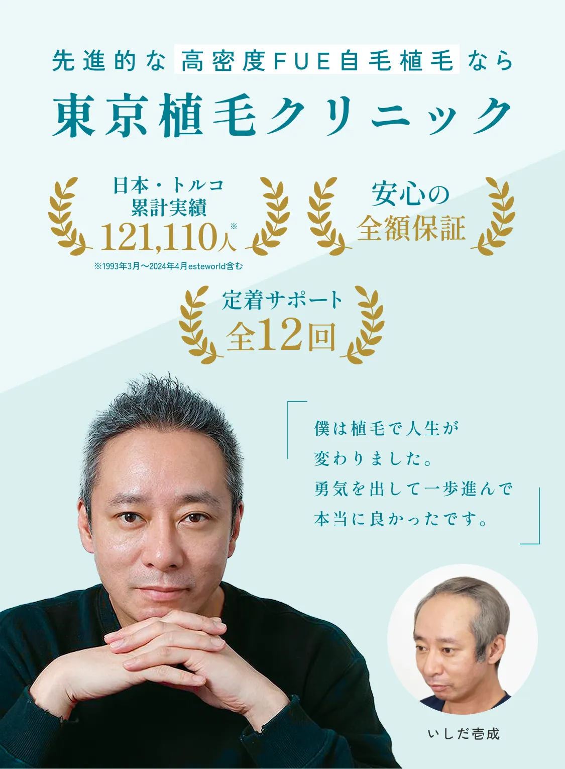 数多くの著名人が信頼する東京植毛クリニック(esteworld JAPAN)。